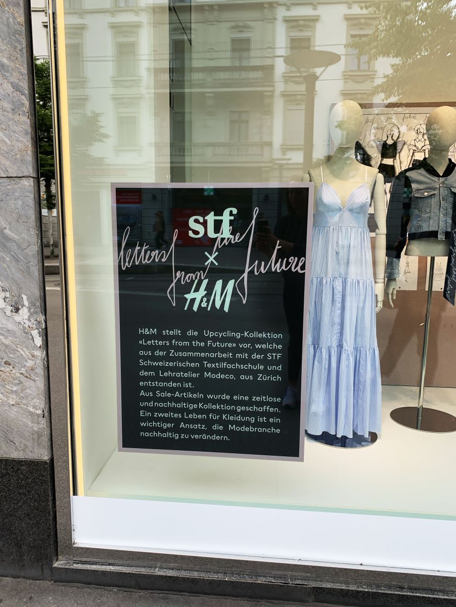 „Letters for the future“ ist der Titel einer Kooperation der Schweizer Design Schule STF, dem Produktionsatelier Modeco sowie H&M Schweiz. Hierbei wurde aus Sale-Artikeln eine neue, einzigartige Upcycling-Kollektion geschaffen, die im Juni 2021 im H&M an der Bahnhofstrasse in Zürich verkauft wurde.