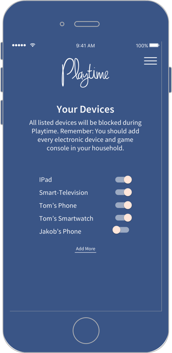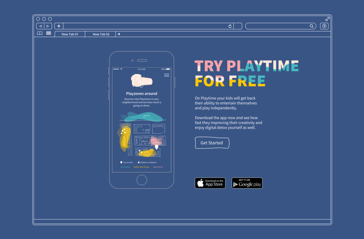 Um freies Spielen, mehr Kreativität und Unabhängigkeit zu fördern, wurde mit der Produktdesignerin Christina Fröhlich im Rahmen ihrer Abschlussarbeit an der Hochschule für Gestaltung Karlsruhe in Karlsruhe, die App PLAYTIME entwickelt.