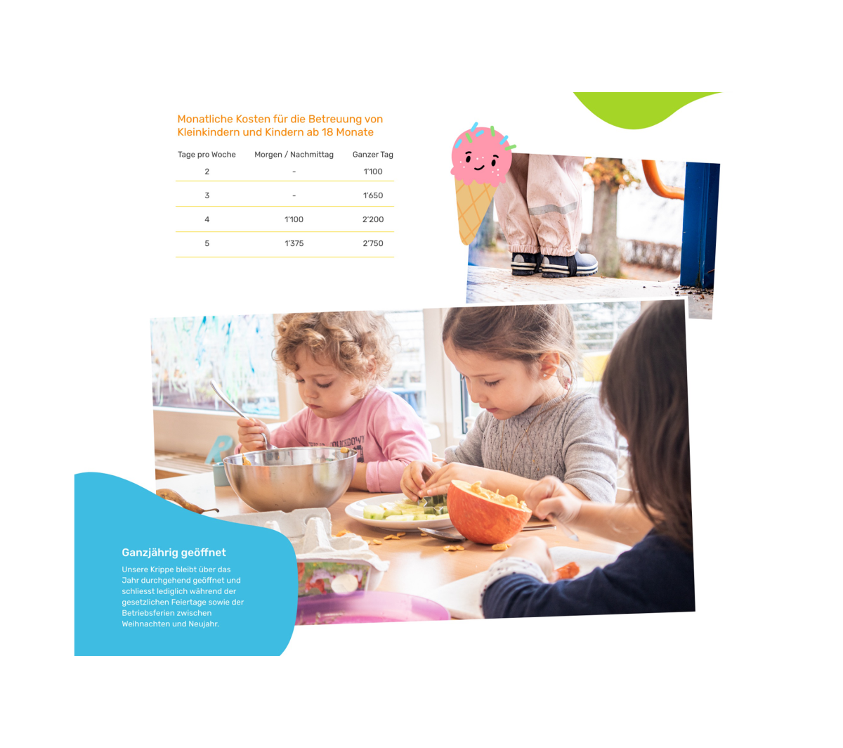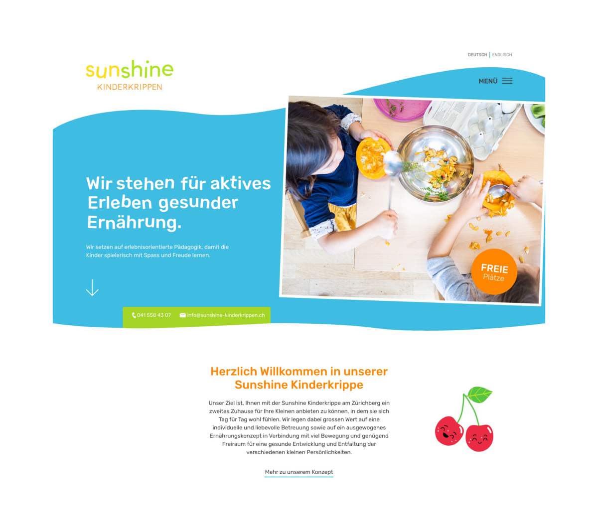 Für die Zürcher Kinderkrippe SUNSHINE setzten wir ein verspieltes, neues Branding inklusive modularer Webseite um.