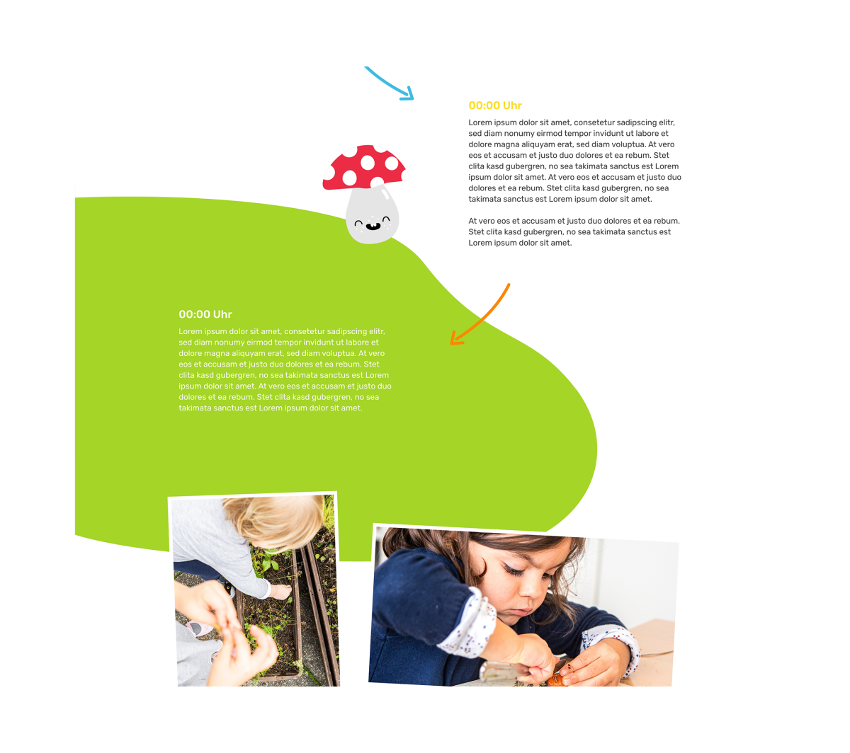 SUNSHINE legt mit einer eigens zuständigen Köchin vor Ort Fokus auf gesunde und abwechslungsreiche Ernährung – um dies künftig noch mehr hervorzuheben, wurden über 50 fröhliche Charaktere, von Paprika bis Hot-Dog eigens illustriert und als zentrales Gestaltungselement verwendet.