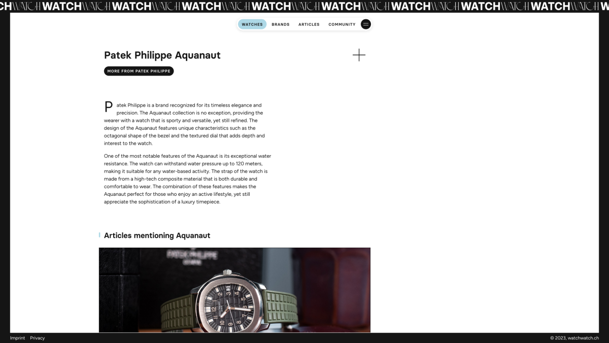 WATCHWATCH hat den Anspruch das umfangreichste Portal zu Fakten und News rund um das Thema Uhren zu werden. Dazu nutzen wir künstliche Intelligenz, Prozess-Automatisierung und Kollaborationen.